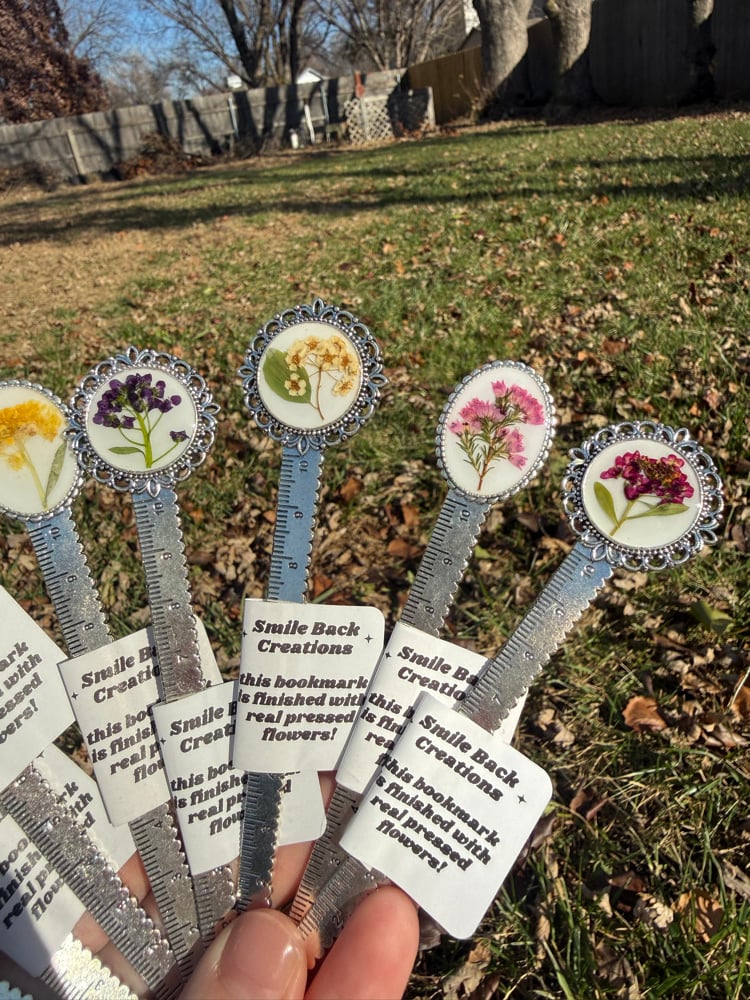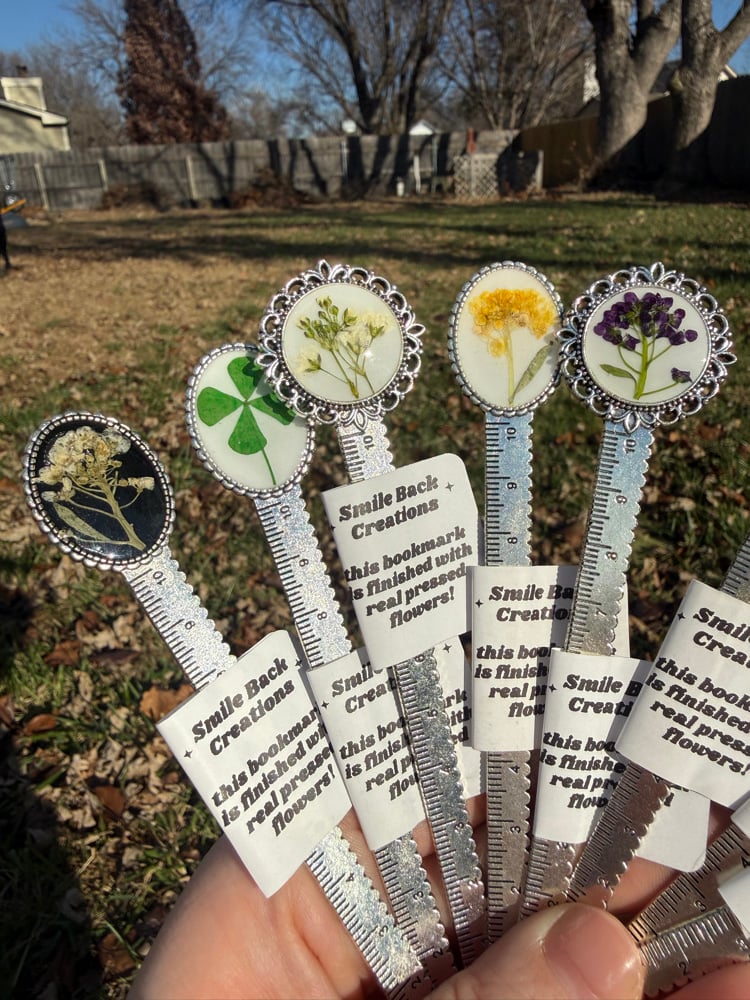 these bookmarks include real flowers preserved in resin & my eternal love ♡